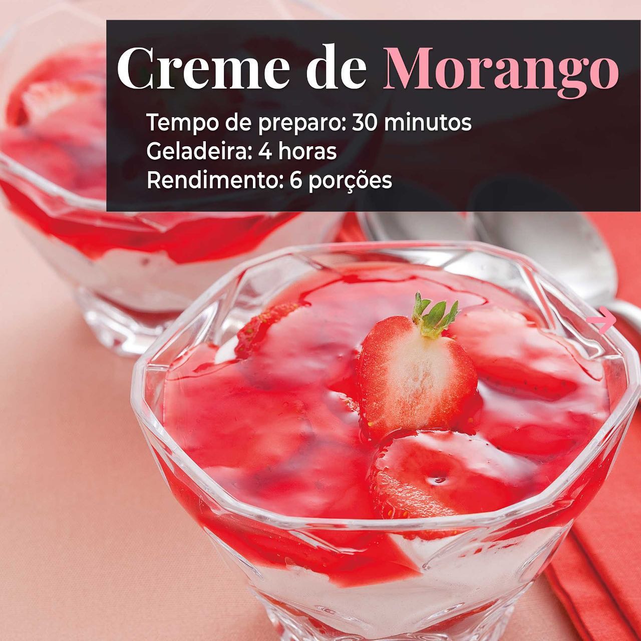 - 2. No fundo de uma taça grande, alterne camadas de morango e creme, finalizando com a fruta.