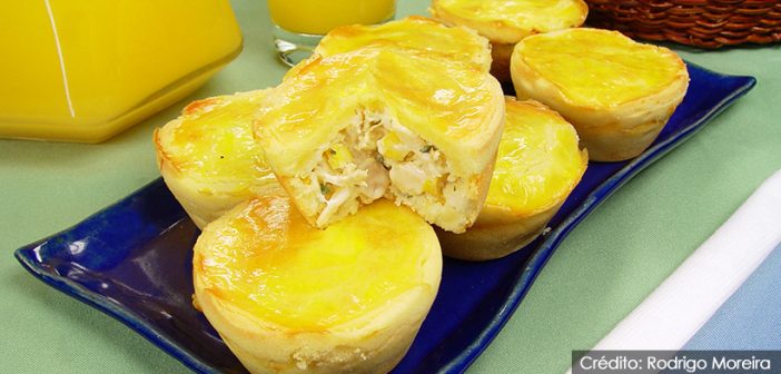 Em uma vasilha, misture todos os ingredientes do recheio e reserve. No liquidificador, bata os ovos, o óleo, o leite, a margarina, o sal, a farinha de trigo e o fermento até ficar homogêneo. Distribua metade da massa sobre forminhas para empadas untadas e enfarinhadas, distribua o recheio sobre a massa e cubra com a massa restante. Coloque as forminhas em uma fôrma grande, uma ao lado da outra e leve ao forno médio, preaquecido, por 10 minutos ou até firmar. Retire, pincele com as gemas e volte ao forno por mais 10 minutos ou até dourar. Retire do forno, espere amornar, desenforme e sirva.