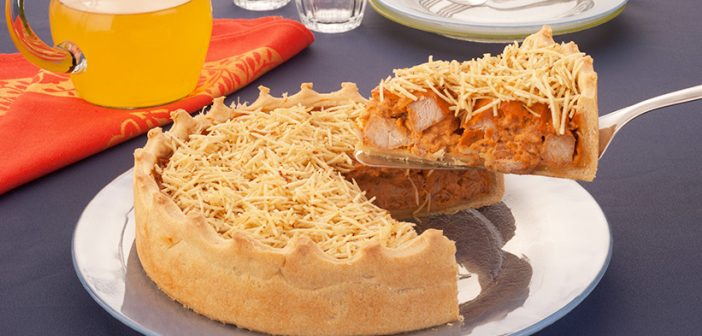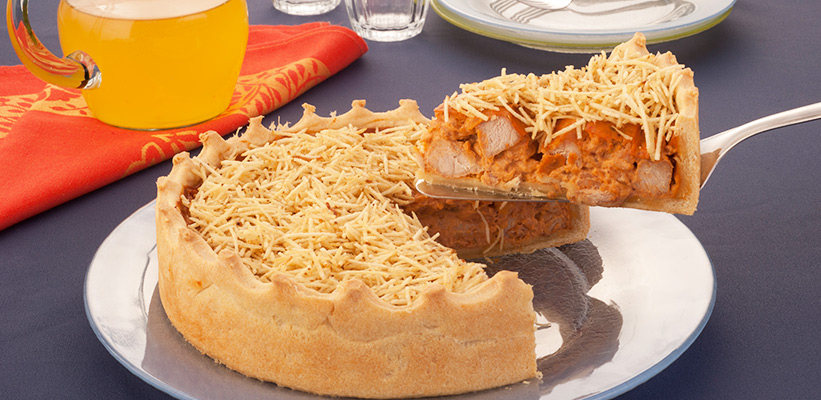 Para o recheio, aqueça uma panela com a manteiga e frite o lombo e a cebola até dourar. Adicione o molho de tomate e refogue por 2 minutos. Junte a maisena dissolvida no leite e cozinhe até engrossar. Tempere com sal a gosto, adicione o creme de leite e a hortelã, misture e desligue o fogo. Reserve. Em uma tigela, misture a farinha, a manteiga e o sal com os dedos até obter textura de farofa. Adicione o ovo e a água, aos poucos, misturando somente para ligar, se necessário adicione mais água. Embrulhe em plástico e leve à geladeira por 30 minutos. Abra a massa com um rolo e forre uma fôrma de aro removível de 26cm de diâmetro. Espalhe o recheio por cima e leve ao forno médio, preaquecido, por 30 minutos. Retire, deixe amornar e desenforme. Polvilhe com batata palha e sirva.