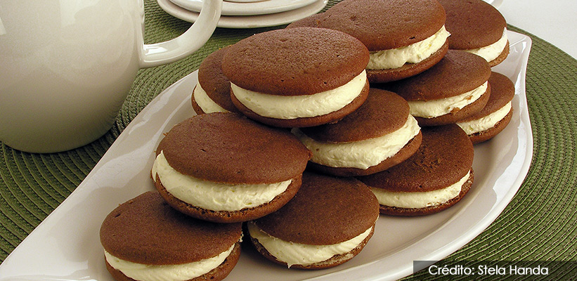 Em uma tigela, peneire todos os ingredientes secos. Na batedeira, bata a gordura e os ovos até ficar homogêneo. Adicione o leite, o chocolate e intercale os ingredientes secos com a água quente. Bata a cada adição até formar uma massa cremosa. Despeje essa massa às colheradas, com uma colher de sopa, em uma fôrma untada com margarina e leve ao forno médio, preaquecido, por 15 minutos. Deixe esfriar antes de desenformar. Para o recheio, derreta levemente o marshmallow em banho-maria. Na batedeira, bata a manteiga e o açúcar até ficar cremoso. Adicione o marshmallow e bata novamente. Retire os whoppies da fôrma, depois de frios, espalhe o recheio em um e junte outro como um sanduíche. Sirva em seguida.